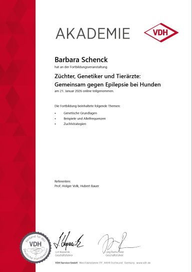 Ich entschloss mich dazu eine Zuchtstätte für Kooikerhondje zu gründen. Auf diesem Wege besuchte ich mehrere Seminare, u.a. das Grundseminar zur Zucht beim VDH. Aber auch schon lange davor, in Verbindung mit meinen Deckrüden und dem Lernen über Zucht, ist die Teilnahme an verschiedenen Fortbildungen für mich eine Selbstverständlichkeit gewesen und ist es natürlich auch immer noch.
